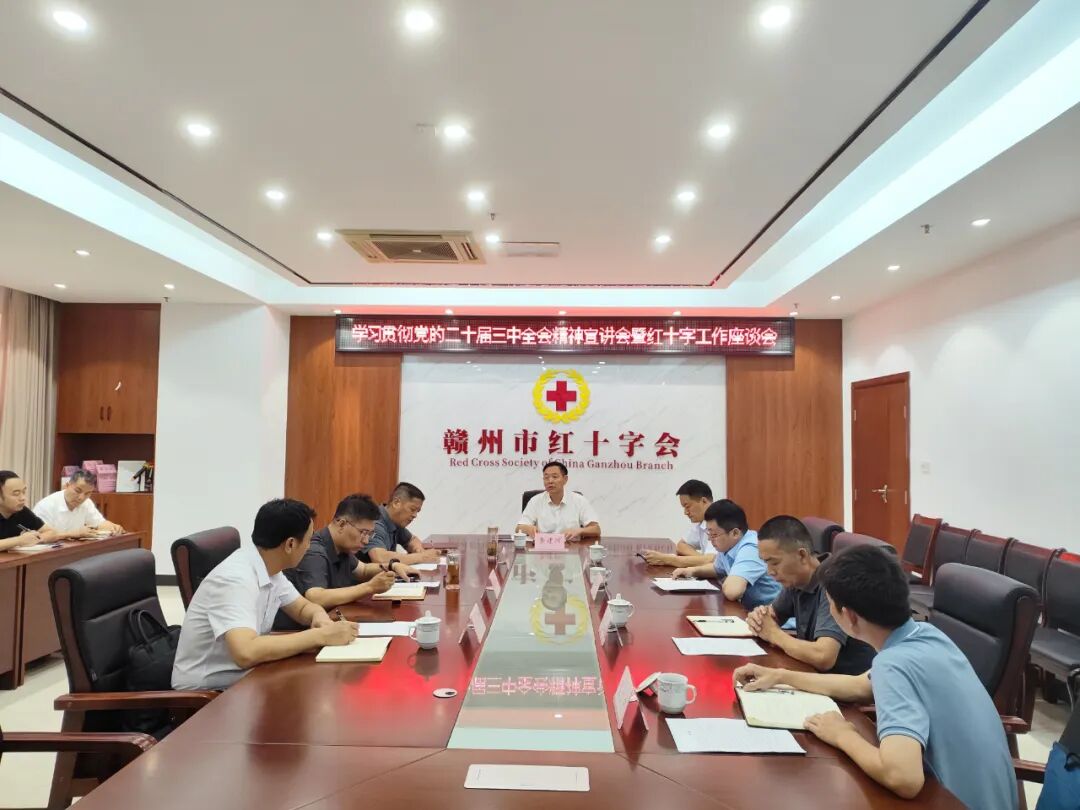 8月22日,省红十字会党组书记、常务副会长龚建辉莅临赣州市红十字会宣讲党的二十届三中全会精神,并就机构建设、人员配置、基层组织建设工作开展调研座谈。市红十字会全体干部职工及章贡区、赣县区、南康区红十字会主要领导参加。